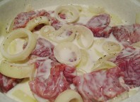 Нарезаем сало так, чтобы объемы кусочков были немного меньше (разы в 2) кусочков печени, иначе шашлык выйдет довольно жирным. Прежде чем вымачивать печень, надо(надобно) убедиться, что она чистая и хорошо подготовлена